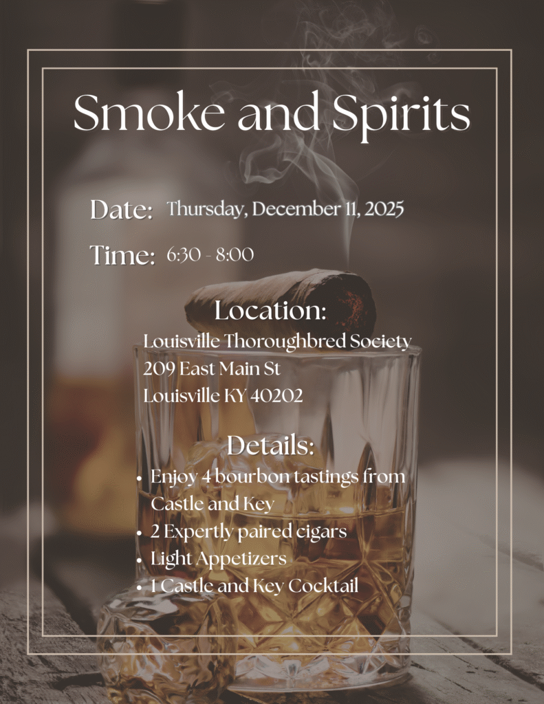 Join us for a unique event featuring a guided tasting experience with Castle & Key Distillery and the experts from Oxmoor Smoke Shop. This evening is designed for those who appreciate the craftsmanship of exceptional spirits and fine tobacco.